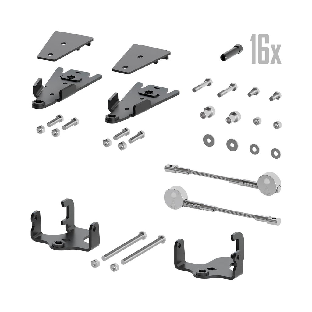 Camso Mounting kit for Polaris General 1000 non-XP, RZR 900 S/Trail/Sport/EPS 2015,5-2023, RZR S4 EPS 2015-2018, RZR Trail S Sport EPS 2024 and up. Comes with front and rear brackets, limiter cables and 16 lug nuts. Make sure you check the owners manual for your track kit to see if this front bracket kit fits your machine.