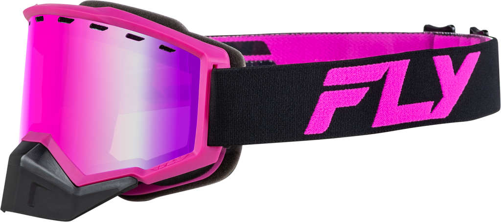 The Fly Racing Focus Snow Goggles deliver clear vision, durability, and comfort for skiing, snowboarding, and snowmobiling in demanding winter conditions. Built with a dual-pane polycarbonate lens featuring premium anti-scratch and anti-fog coatings, these ski goggles are designed to keep your vision sharp and fog-free. The lightweight polyurethane frame is engineered to expand your field of view, giving you massive peripheral vision on the slopes. A premium three-layer moisture-managing face foam and outriggers provide a secure, comfortable seal, whether worn with a ski helmet, snowboard gear, or snowmobile goggles setup. The quick-change lens system makes swapping lenses simple, while optional accessories and colors let you customize your look. An adjustable 40mm strap with non-slip silicone ensures the goggles stay in place during high-intensity rides. Adult sizes include a removable nose cover for added protection(Not included in youth size). Each pair includes a microfiber storage bag.