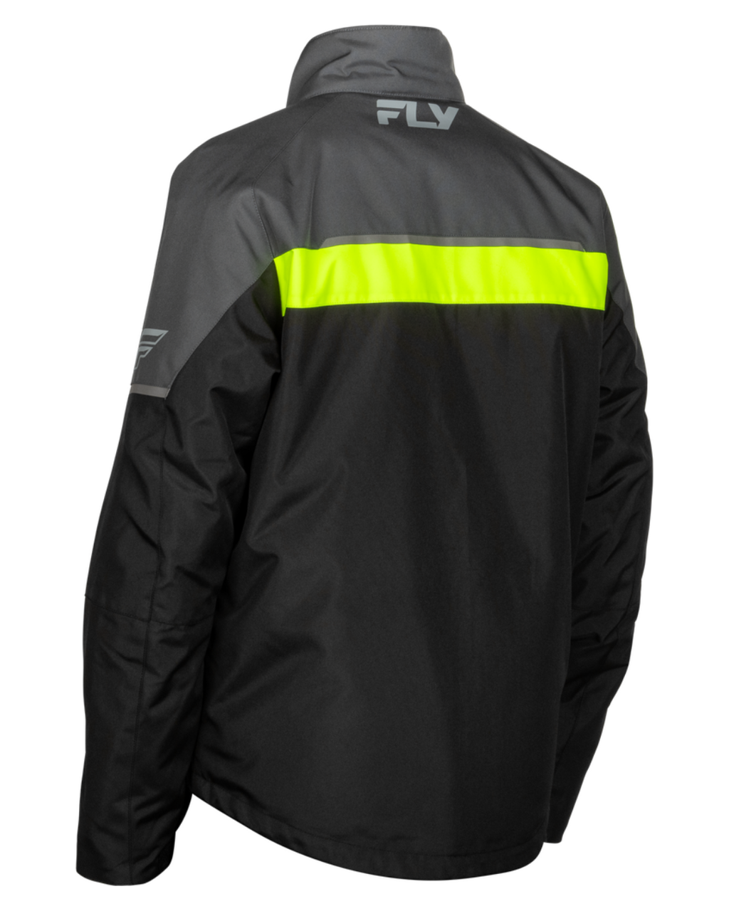 The Fly Racing Aurora Snow Jacket is built for riders who demand performance, durability, and comfort in every winter condition. Designed as a versatile men’s snowmobile jacket, it combines Hydraguard waterproof, windproof, and breathable protection with 120g of lightweight insulation to keep you warm without weighing you down. Engineered for convenience, it features a dedicated goggle pocket, waterproof storage, micro-fleece collar, and hand warmer pockets for comfort on long rides. Safety is always a priority, with reflective logos and panels enhancing visibility in low light while the drop-tail design keeps out snow and cold. When temperatures rise, 2Cool Air Vents provide adjustable airflow to help regulate your body heat, and the standard fit gives you freedom of movement whether you’re on a snowmobile, skis, or snowboard. Finished with a durable YKK zipper and tether D-ring, the Aurora delivers reliable protection season after season.